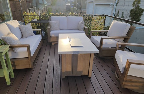 Enjoy a BBQ with our ceramic egg and enjoy the plants and statuary in the garden. The front porch offers views of Mount Rainier when visible. The back deck faces the water, is very private and offers one of the best views in Tacoma, from the Cascade Mountains to the Olympics, Vashon and Maury Island, and the Browns Point Lighthouse. You will be amazed at the unobstructed view from the back deck. Enjoy lounging in our new luxury deck furniture and enjoy the propane fire pit when it is a little chilly. Entertain yourself with the Port of Tacoma as you watch the boats and cargo ships that use the sound every day. The scenery is constantly changing and even when raining you will have wonderful views. Look for eagles and hawks. In the summer enjoy the sailboats and watch or enjoy a para sail.