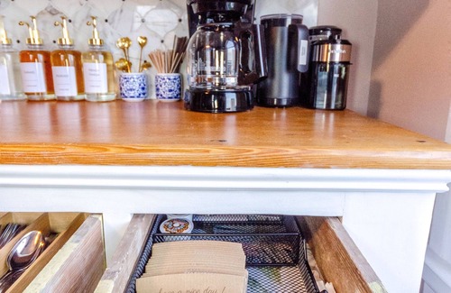 The fully equipped kitchen includes a full-size gas stove and oven, a large refrigerator, and all the essentials you need to cook meals at home. A vintage German wood stove adds a unique touch of antique charm to the space, while modern touches like a washer and dryer ensure all the comforts of home are at your fingertips. The antique clawfoot bathtub in the bathroom invites you to soak and unwind after a long day of exploring the city.