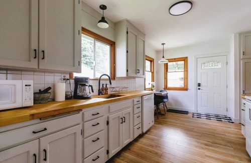 It's our home so you can expect all of the amenities of home including a fully stocked kitchen, excellent wifi for remote work, a washer and dryer, a yard complete with a garden, a library of books, and pottery and artwork made or collected by us. We hope this will be a home away from home for you and yours.