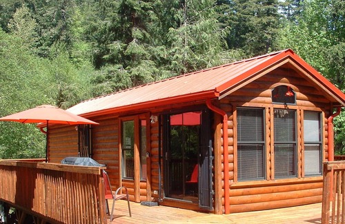 Nestled on the Greenwater River and overlooking Huckleberry Mountain has one queen bedroom and a queen fold-out bed in the living room.