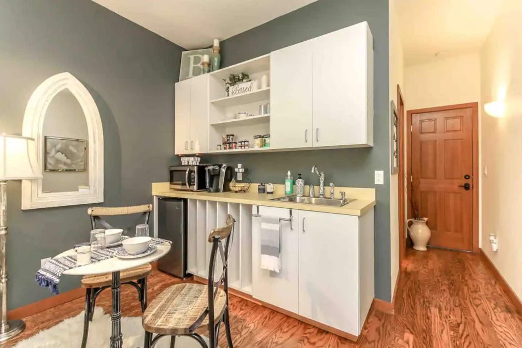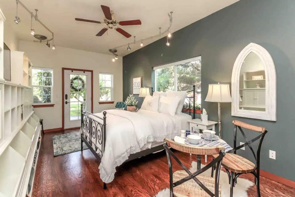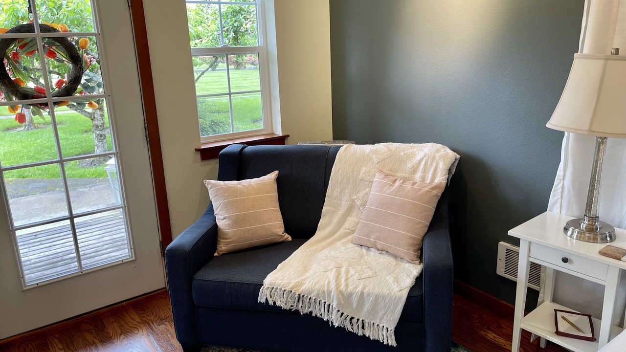 You'll be staying in our detached/private cottage next to our family orchard and goat pasture. Inside you'll find a well appointed/decorated studio complete with queen and pull-out sofa beds, dine in kitchenette with refrigerator, microwave, coffee maker, and a full bathroom with shower. Guest wifi on site with SmartTV offering many popular streaming apps. Mobile air conditioning unit available for the warm summer months. Feel free to use our orchard hammock at your leisure. Have a seat around our spacious fire pit area near the pasture while you visit with our friendly LaMancha and Alpine goats.